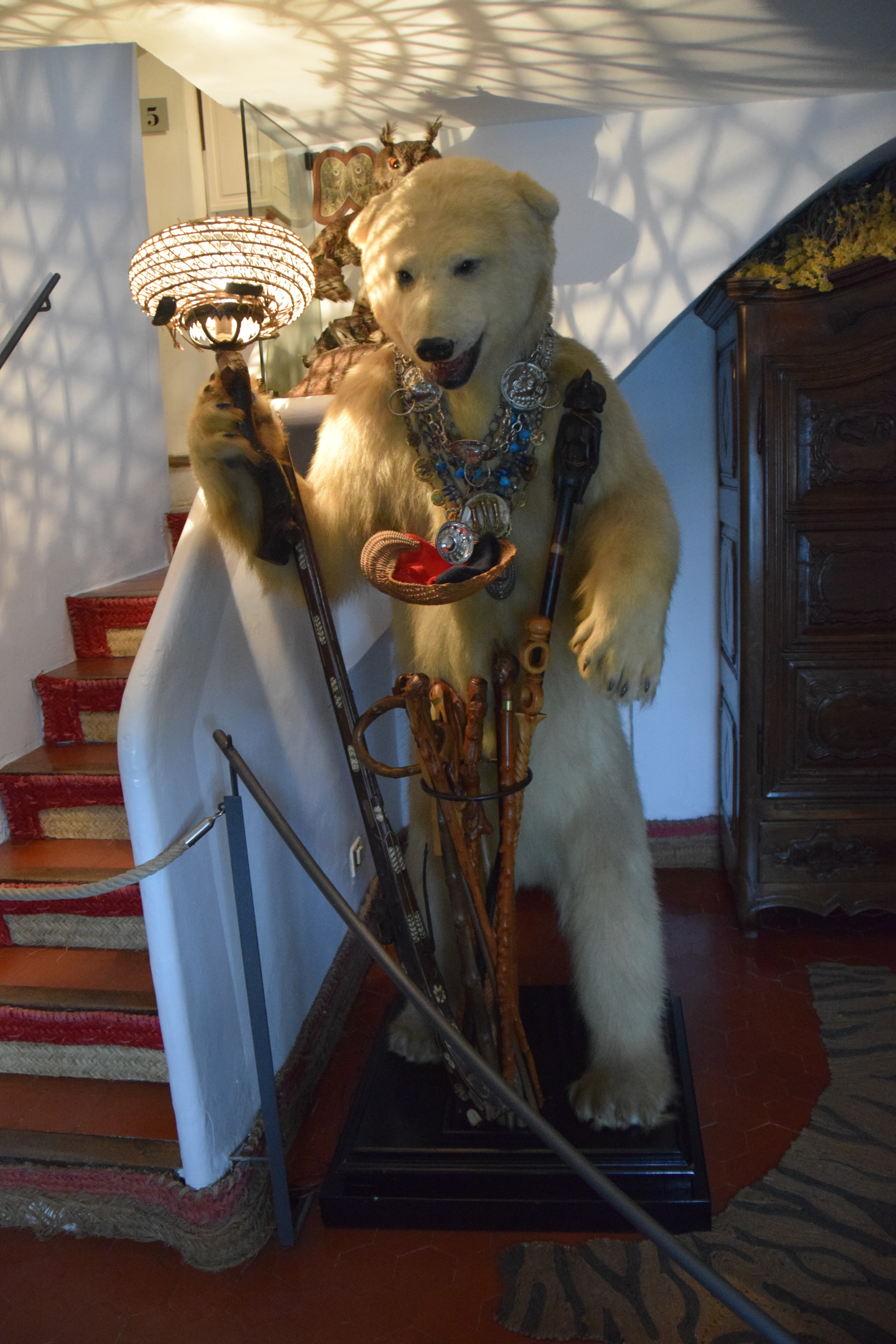 What I hadn’t appreciated was his obsession with stuffed animals – from the 3 swans that he used to feed on the beach, which on death were stuffed and displayed in his library, to the grotesque rhinoceros head set amid giant eagle wings, to the two kid goats in his bedroom and the jewellery adorned polar bear in his entrance hall…. I knew immediately this was a man I simply could not like!
