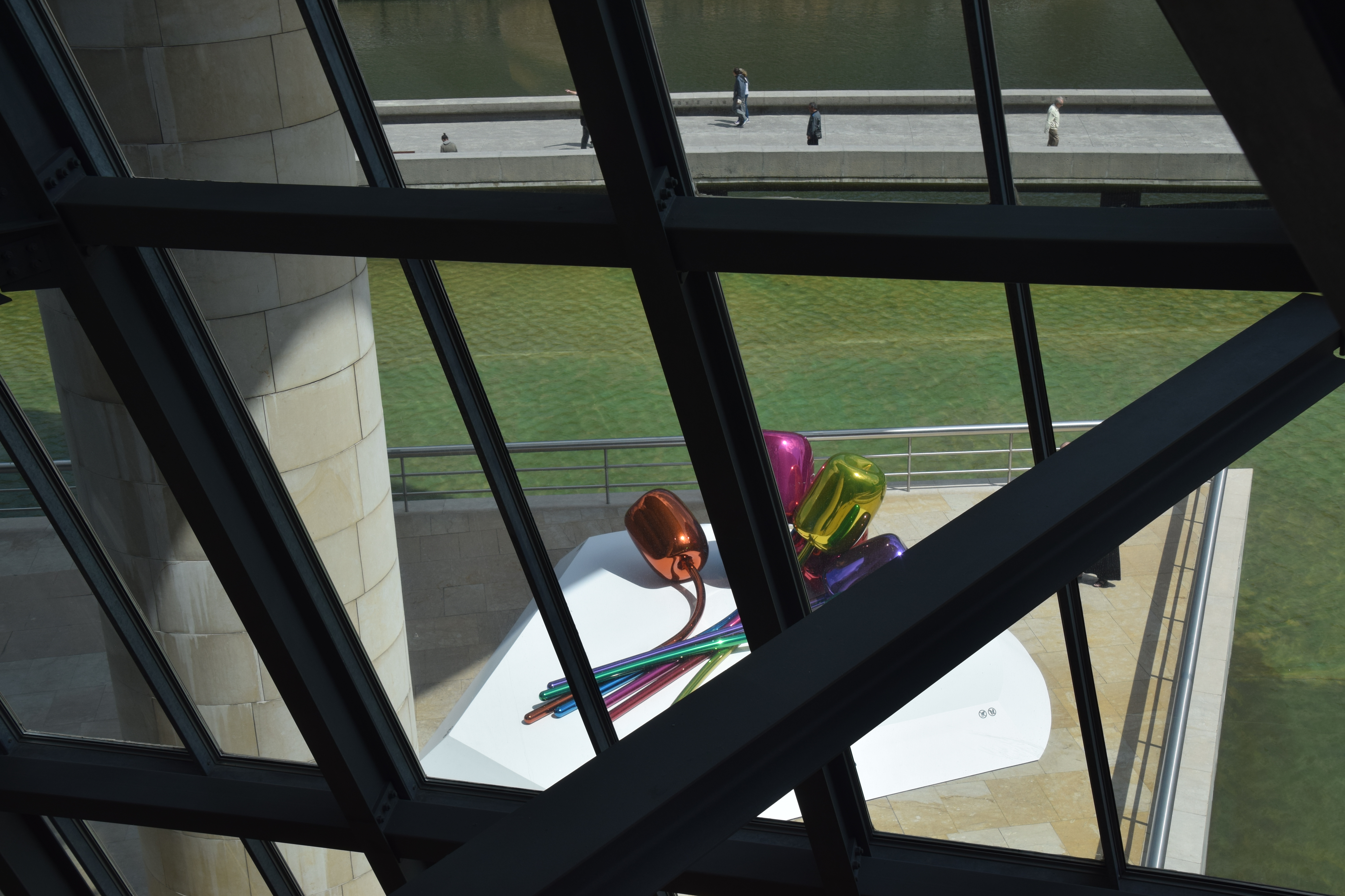 Part of the attraction of visiting San Sebastián – apart from the fabulous dinner at Mugaritz, was the opportunity to visit the Guggenheim in Bilbao. After an abortive plan to spend Monday in Bilbao – fortunately this time discovered the museum was closed on Monday BEFORE we set out for the longish drive – we rescheduled this excursion for our last day, on the way (well, sort of) back to Barcelona.