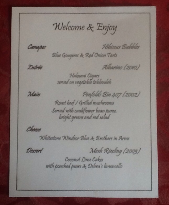 So when I was asked to donate an item for a charity auction, to support a colleague recently diagnosed with Parkinsons Disease, I hatched an elaborate plan. A pairing for Parky, a matched food and wine dinner for 10 people – at home, because charity, of course, begins at home. It sounded like a good idea at the time – but on the night, with close to a thousand dollars paid for what was simply “dinner at my place”, I have to admit to a small feeling of trepidation.
