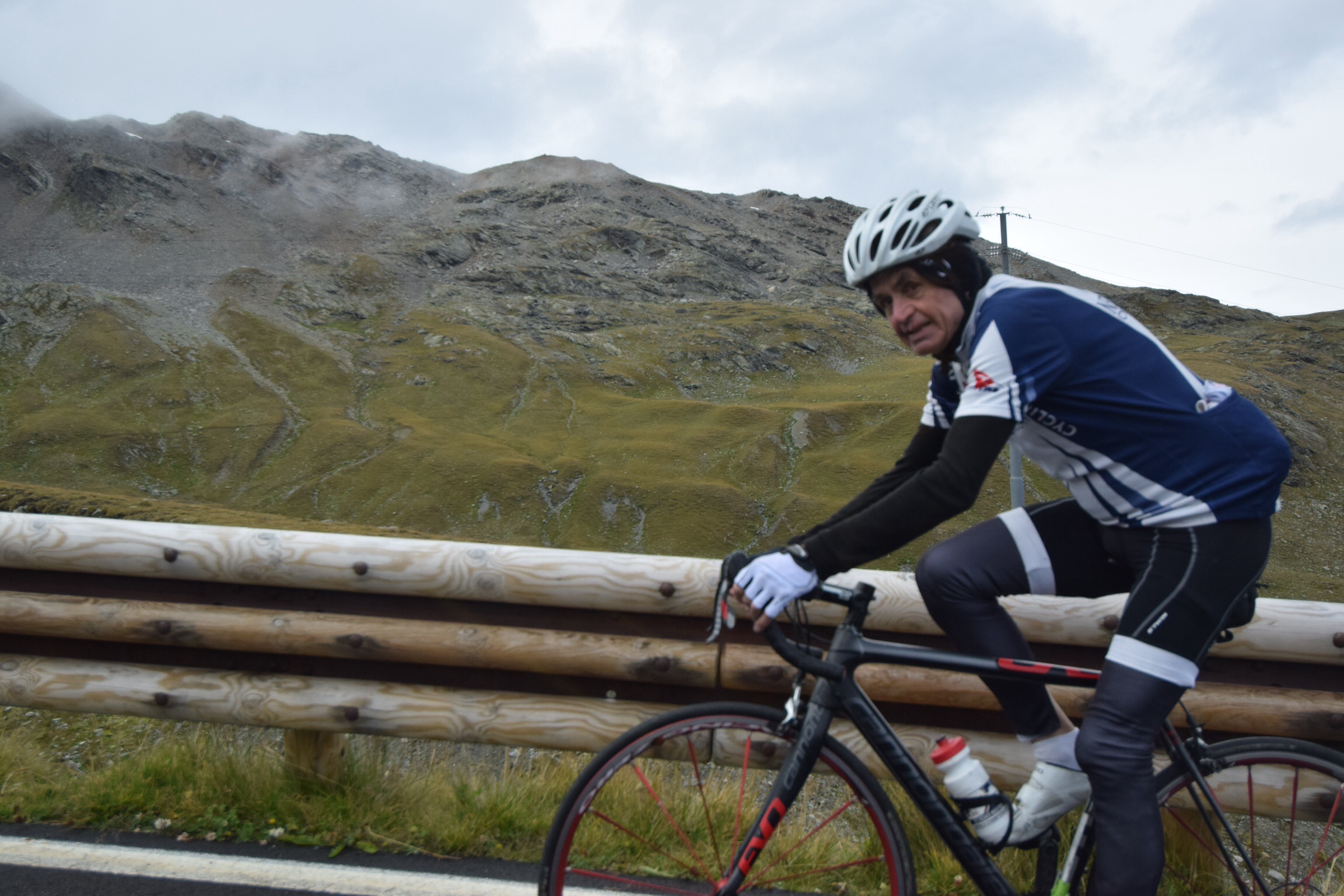 Still no rest for the wicked. The next day is Gavia from the traditional side. Trip to the start by car. Then up and over and down to Bormio. A 100 meters or so lower than Stelvio. Similar gradients but for me a nicer ride. On the exposed upper reaches a head wind on alternate switches – which means you get blown up the alternate ones.