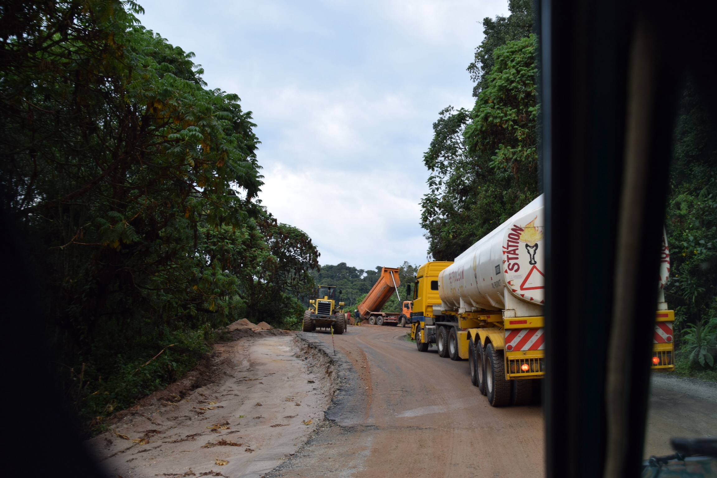 Go back go the forms desk – sure enough, an arrivals form, akin to a mini census! Fill them in, persuade the Ebola man he’s already got our Ebola forms, back at passport control… No visa, he says, need to pay!