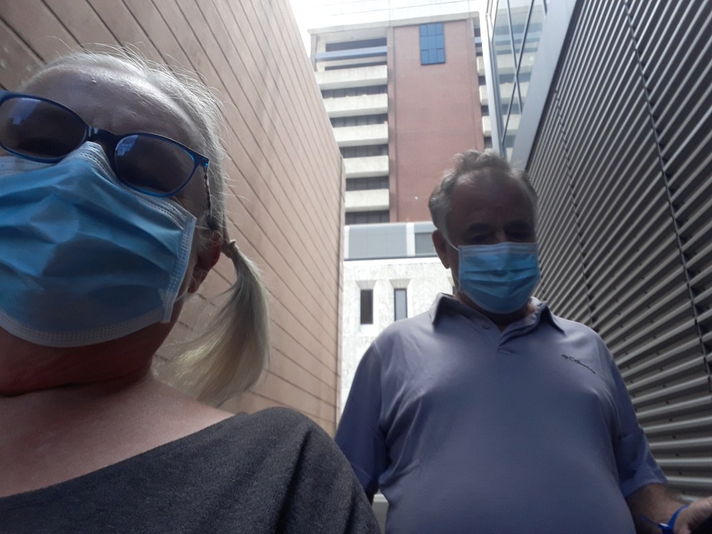 Paperwork completed in the room (including a health check from the nurse) to be handed in, passports presented (they have to be sure the right people are escaping), and then as you leave, put your mask in the bin, sanitise your hands and THEN exit the gate. Peter caused much consternation by choosing to put on a new mask – we all thought he’d forgotten to bin the ‘hotel-contaminated’ one… he was unco-operative, and only crossly explained when things got heated!