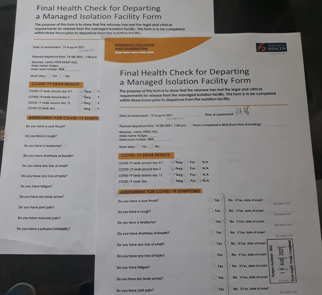The only missing piece of the process was the bill. Because we chose to leave, knowing we would have to isolate on return, we have to pay for our two weeks in a 4 start hotel – apparently they will send the bill in the due course. Okay. At least the hotel made sure that we paid for all those barista coffees before we left.